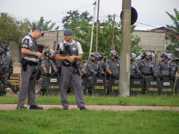 Diário Liberdade - [Atualizado 02h45] De maneira inesperada e ilegal, a Polícia Militar de São Paulo iniciou a invasão e o despejo dos moradores da comunidade do Pinheirinho. Na operação, que pegou de surpresa os moradores, participaram cerca de 2 mil policiais militares, convocados em cerca de 33 municípios, incluindo a Rota e Tropa de Choque, que utilizaram 220 veículos, um carro blindado e dois helicópteros Águia, além de 40 cães e 100 cavalos, armamentos letais como pistolas e automáticas, balas de borracha e gás lacrimogêneo e pimenta. Os policiais afirmam que permanecerão ali até segunda-feira para impedir tentativas de retorno dos moradores.