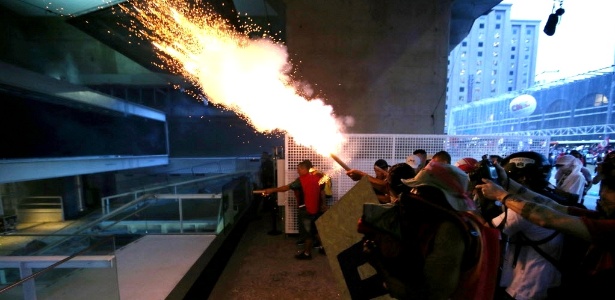 Na noite de terça, dia 13, um grupo de manifestantes invadiu o prédio na Paulista e lançou rojões e fogos de artifício no interior.