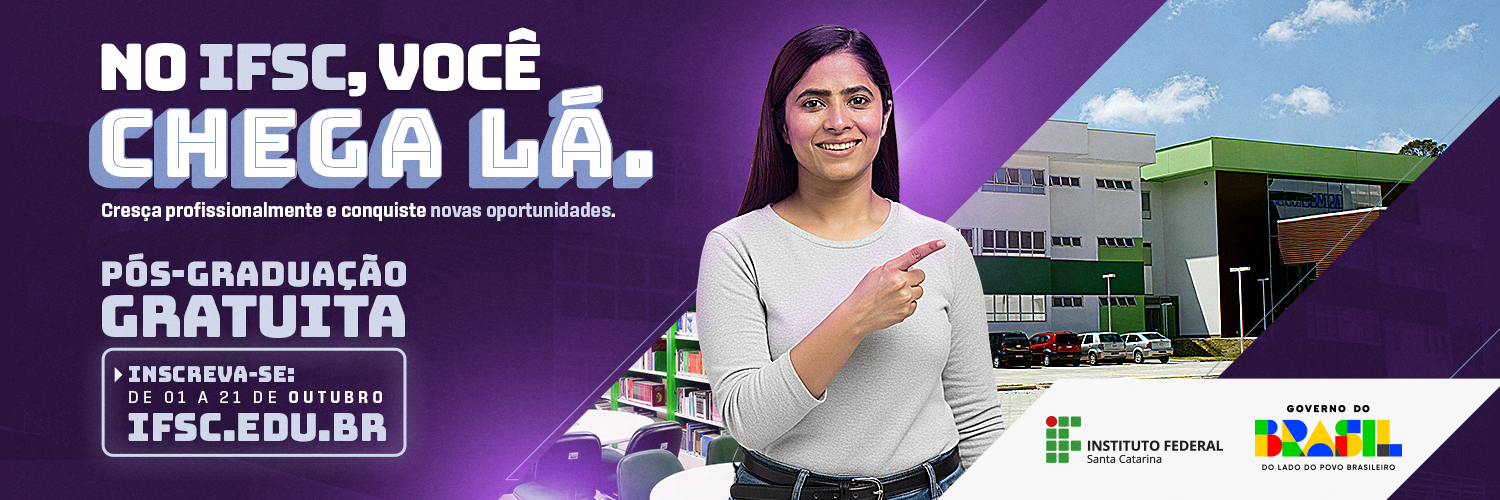 Estão abertas até 21 de outubro as inscrições para seis cursos gratuitos de especialização do IFSC. Quatro deles são presenciais e dois são oferecidos a distância. Confira a lista de cursos por cidade: Para se inscrever, os interessados devem seguir os seguintes passos: - Acessar o Portal de Inscrições;