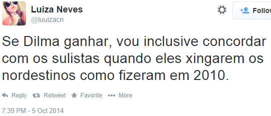 Os comentários referem-se à vitória de Dilma Rousseff (PT) no primeiro turno e seu forte eleitorado no Nordeste do país.